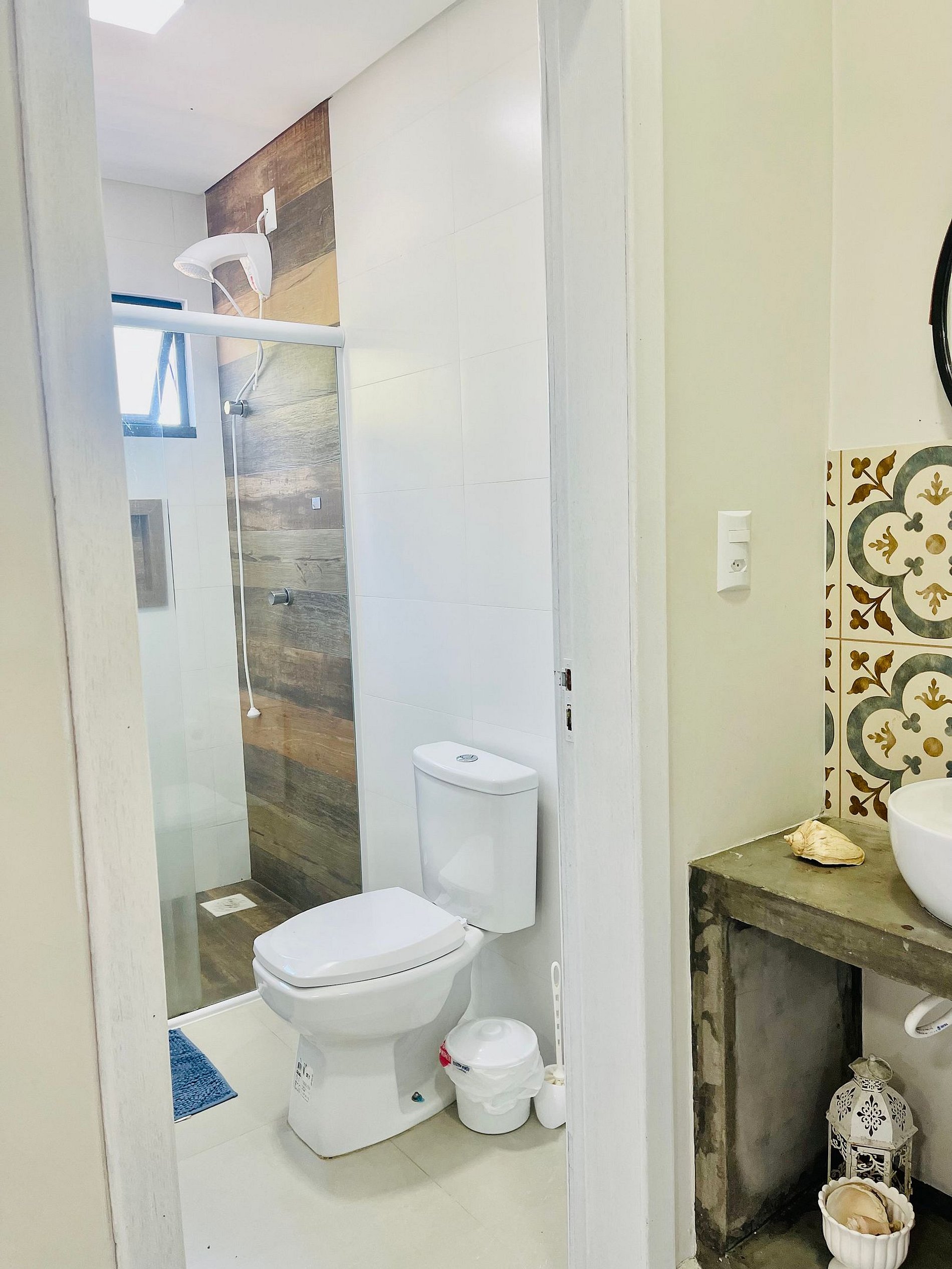 Referente a roupas de banho NÃO fornecemos, no banheiro tem apenas um piso na saída do box, papel higiênico e sabonete liquido.