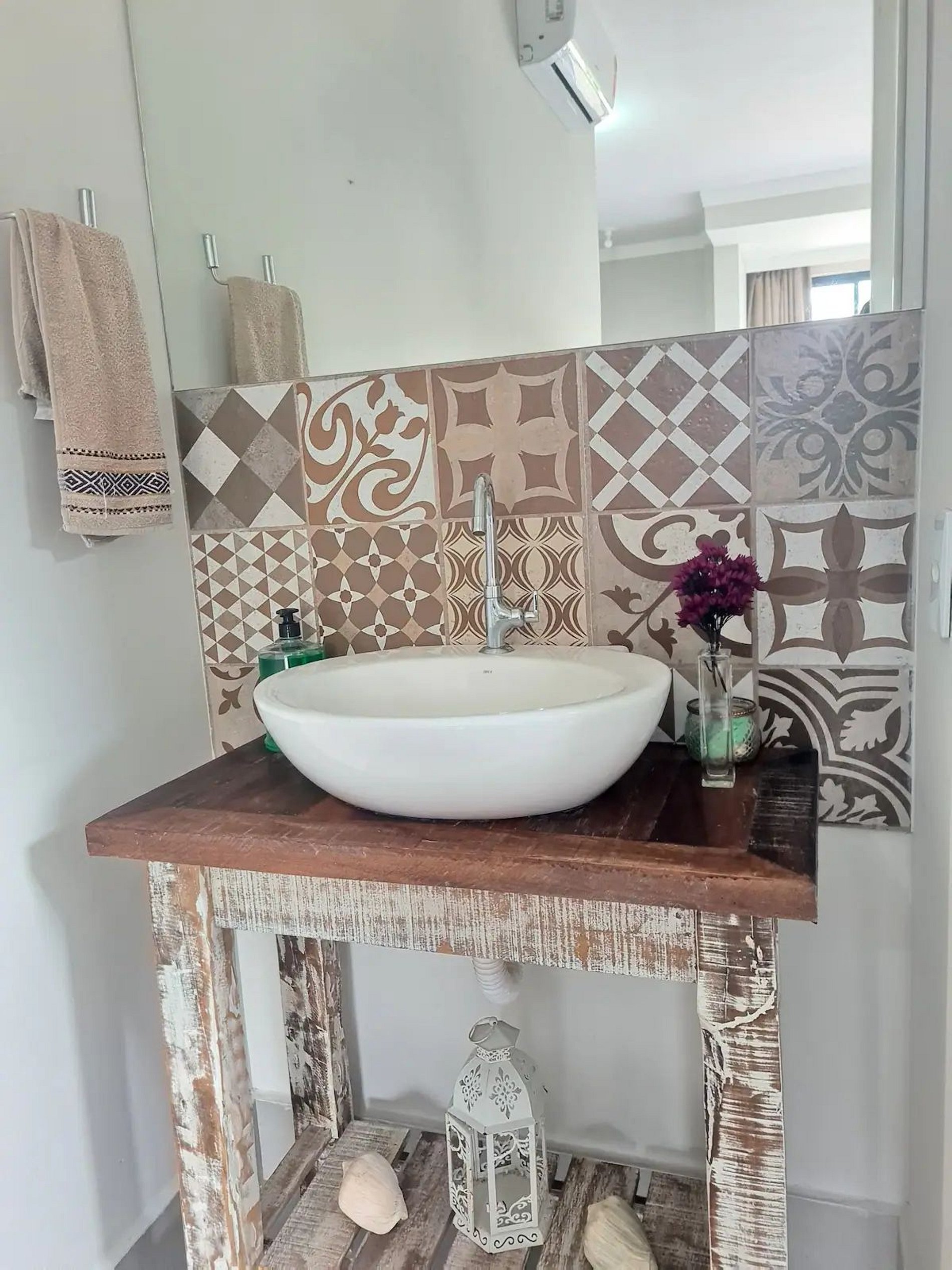 Referente a roupas de banho NÃO fornecemos, no banheiro tem apenas um piso na saída do box, papel higiênico e sabonete liquido.