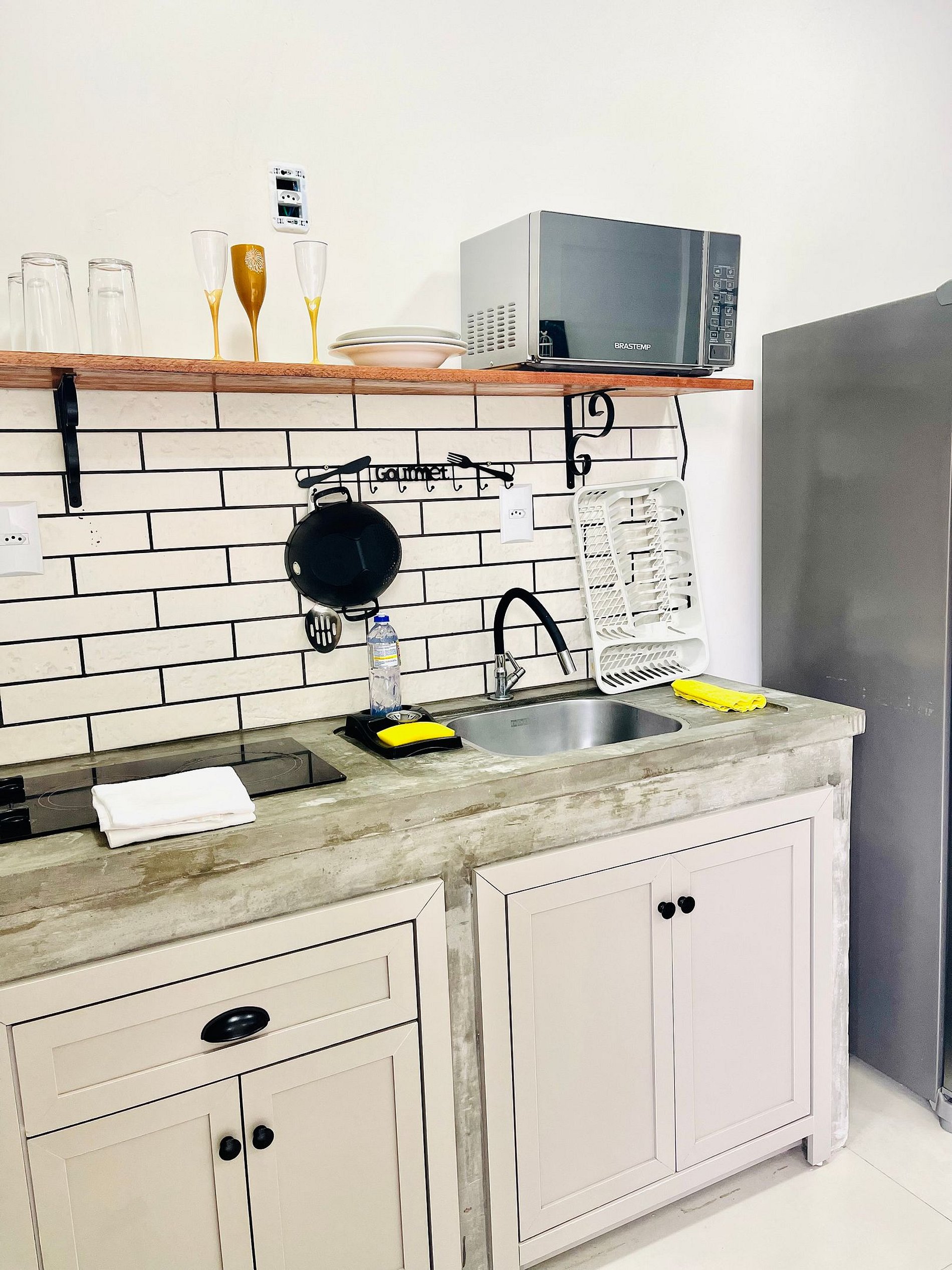 RESIDENCIAL VILA DAS CANOAS Acomoda bem 4 pessoas, apto tipo Studio, conceito aberto (não tem divisórias), contem um banheiro privativo e uma cozinha completa com itens básicos para 4 pessoas realizarem todas as refeições . Apartamento na lateral do prédio, com um lance de escada conforme as fotos, as categorias desse andar são internamente todos iguais em tamanho e janelão, porem pode alterar alguma decoração ou cor dos moveis.